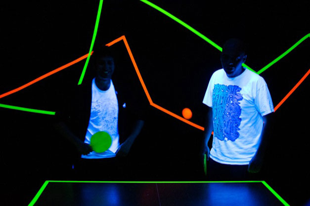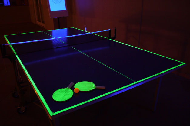 Učesnicima je na rapolaganju 3 profesionalna stola. Noćni stoni tenis - Jedisntvena atrakcija. Stoni tenis u marku pod ultraljubičastim lampama.